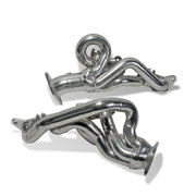 THESE BBK PERFORMANCE SHORTY TUNED LENGTH EXHAUST HEADERS ARE DESIGNED AND CONSTRUCTED AS DIRECT FIT REPLACEMENTS FOR ALL 2015 UP MUSTANG GT APPLICATIONS. EACH HEADER IS MANUFACTURED WITH 1-3/4 INCH CNC MANDREL BENT TUBING THAT OFFERS UNRESTRICTED EXHAUST FLOW FOR INCREASED HORSEPOWER AND TORQUE OVER FACTORY OEM MANIFOLDS. BBK TUNED LENGTH HEADERS OFFER IMPROVED SCAVENGING WAVES FOR BETTER COMBUSTION; WHICH LEADS TO IMPROVED PERFORMANCE AND FUEL ECONOMY OVER STOCK OR EQUAL LENGTH HEADERS. AS WITH ALL BBK PERFORMANCE EXHAUST HEADERS THEY FEATURE A 3/8 INCH LASER CUT FLANGE FOR ADDITIONAL STRENGTH AND A GUARANTEED LEAK FREE FIT. ALL HEADERS ARE ROBOTICALLY AND PRECISION HAND WELDED AND THEN PRESSURE TESTED TO ENSURE YEARS OF RELIABILTY AND PERFORMANCE IN THE REAL WORLD. ALL BBK EXHAUST HEADERS ARE AVAILABLE IN A BRIGHT CHROME OR POLISHED SILVER CERAMIC COATED FINISH AND INCLUDE NEW EXHAUST HEADER GASKETS; HEADER BOLTS AND HARDWARE TO COMPLETE THE INSTALLATION.