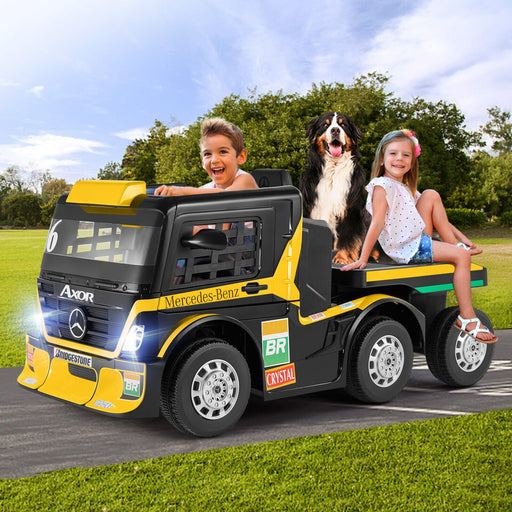 12V10AH Battery-Powered Ride On Truck with Swing Trailer and RC Control for Kids - MP3 Compatible, 6 Wheels
