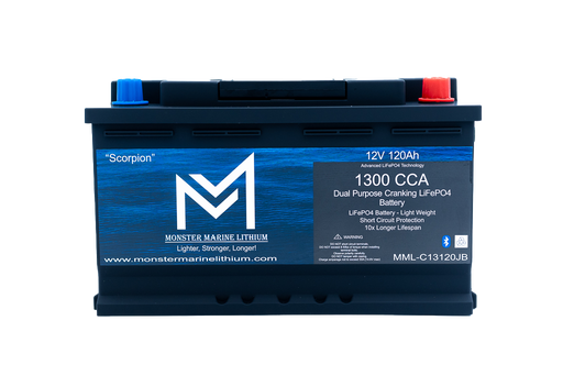 ⚡ Monster Marine Lithium™ “Scorpion” 1300CCA • 120Ah Dual Purpose Bluetooth Cranking Lithium Battery Model: MML-13C120JB Overview Meet The Scorpi...