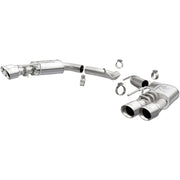 The MagnaFlow 2018-2023 Ford Mustang Competition Series Axle-Back Performance Exhaust System 19418 brings an aggressive, attention-grabbing edge to the deep resonant exhaust note we're so well known for. This exhaust kit is designed to enhance your 5.0L 2018-2023 Ford Mustang with dyno-proven performance made possible thanks to fast-flowing mandrel bent 3in. main piping and 2 Straight-Through mufflers ending in a Quad Split Rear exit with 4in. Polished Welded-On Double Wall Angle Cut Folded Edge tips featuring a sporty finish. The exhaust system's axle-back layout replaces your ride's exhaust system from near the rear axle on back. Exhaust system 19418 is engineered to make your vehicle's engine produce Aggressive exterior and Moderate interior sound levels, befitting its competition-oriented design. 19418's direct-fit design makes installation a breeze thanks to the use of advanced 3D scanning techniques. This performance exhaust system is made of 100% durable and corrosion-resistant stainless steel and produced using CNC precision robotic manufacturing, all backed by MagnaFlow's limited lifetime warranty. Please check to ensure compliance with local noise regulations.