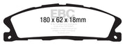Designed for premium street driving offering better brake effect up to 600-degrees C (1100-degrees F). EBC Greenstuff has a high initial brake effect and gives drivers confidence from first application of the brake pedal. There is no such thing as a NO DUST pad. The very nature of how a brake works requires that some dust be generated to avoid rotor vibration (shimmying). The EBC pad creates less dust and dust is more easily washed off than most. All pads create more dust as they are bedding in especially if rotors are worn. Nominal friction coefficient 0.55. For heavier faster cars and vehicles above 200bhp we strongly recommend Redstuff which DOES offer much less dust.