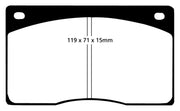 EBC Yellowstuff is an aramid fibre based brake compound with high brake effect form cold and is possibly one of the first ever compounds that can be used for STREET AND TRACK DRIVING. These pads do not require warm up but do get even stronger under the heat of hard driving. These are not a low dust pad and if your desire is for a low dust premium street use pad, you should consider EBC Redstuff.When considering full race use, Yellowstuff has been a strong favourite, having been used for two years in the Swedish Camaro Cup and at numerous other race events where a stock caliper system is fitted.It is also the choice of 90-percent of the Mazda MX5 Miata competitors in the UK race series and has an unblemished record as rotor friendly track pad for vehicles up to 2000 lbs weight or 200 BHP.In the USA the SCCA and NASA drivershave been testing Yellowstuff with feedback and good reports POURING in from a 543 test driver major market proving event with these groups. Read that figure again 543 test drivers.There is no guesswork here.