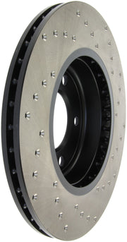 StopTech Drilled Sport Rotors are 1-piece direct replacement brake discs for factory brake systems and stock calipers that look great behind your wheels – and offer significantly improved braking performance. The unique cross-drilling aids with heat and brake dust dispersal; prevents glazing of the pads; adds bite and improves wet and dry braking performance. Built to last; the black e-coating provides protection from corrosion and the high carbon metallurgy (in most applications) offers quieter operation; better crack resistance and increased performance.