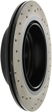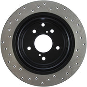 StopTech Drilled Sport Rotors are 1-piece direct replacement brake discs for factory brake systems and stock calipers that look great behind your wheels – and offer significantly improved braking performance. The unique cross-drilling aids with heat and brake dust dispersal; prevents glazing of the pads; adds bite and improves wet and dry braking performance. Built to last; the black e-coating provides protection from corrosion and the high carbon metallurgy (in most applications) offers quieter operation; better crack resistance and increased performance.