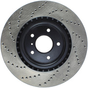 StopTech Drilled Sport Rotors are 1-piece direct replacement brake discs for factory brake systems and stock calipers that look great behind your wheels – and offer significantly improved braking performance. The unique cross-drilling aids with heat and brake dust dispersal; prevents glazing of the pads; adds bite and improves wet and dry braking performance. Built to last; the black e-coating provides protection from corrosion and the high carbon metallurgy (in most applications) offers quieter operation; better crack resistance and increased performance.