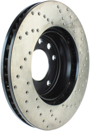 StopTech Drilled Sport Rotors are 1-piece direct replacement brake discs for factory brake systems and stock calipers that look great behind your wheels – and offer significantly improved braking performance. The unique cross-drilling aids with heat and brake dust dispersal; prevents glazing of the pads; adds bite and improves wet and dry braking performance. Built to last; the black e-coating provides protection from corrosion and the high carbon metallurgy (in most applications) offers quieter operation; better crack resistance and increased performance.