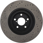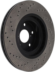 StopTech Drilled Sport Rotors are 1-piece direct replacement brake discs for factory brake systems and stock calipers that look great behind your wheels – and offer significantly improved braking performance. The unique cross-drilling aids with heat and brake dust dispersal; prevents glazing of the pads; adds bite and improves wet and dry braking performance. Built to last; the black e-coating provides protection from corrosion and the high carbon metallurgy (in most applications) offers quieter operation; better crack resistance and increased performance.