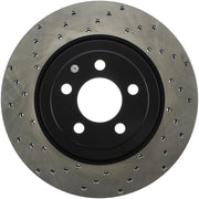 StopTech Drilled Sport Rotors are 1-piece direct replacement brake discs for factory brake systems and stock calipers that look great behind your wheels – and offer significantly improved braking performance. The unique cross-drilling aids with heat and brake dust dispersal; prevents glazing of the pads; adds bite and improves wet and dry braking performance. Built to last; the black e-coating provides protection from corrosion and the high carbon metallurgy (in most applications) offers quieter operation; better crack resistance and increased performance.