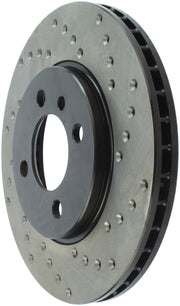 StopTech Drilled Sport Rotors are 1-piece direct replacement brake discs for factory brake systems and stock calipers that look great behind your wheels – and offer significantly improved braking performance. The unique cross-drilling aids with heat and brake dust dispersal; prevents glazing of the pads; adds bite and improves wet and dry braking performance. Built to last; the black e-coating provides protection from corrosion and the high carbon metallurgy (in most applications) offers quieter operation; better crack resistance and increased performance.