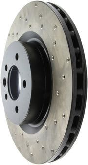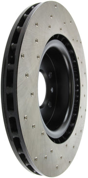 StopTech Drilled Sport Rotors are 1-piece direct replacement brake discs for factory brake systems and stock calipers that look great behind your wheels – and offer significantly improved braking performance. The unique cross-drilling aids with heat and brake dust dispersal; prevents glazing of the pads; adds bite and improves wet and dry braking performance. Built to last; the black e-coating provides protection from corrosion and the high carbon metallurgy (in most applications) offers quieter operation; better crack resistance and increased performance.