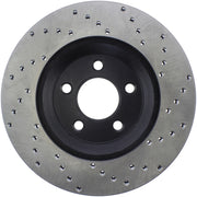 StopTech Drilled Sport Rotors are 1-piece direct replacement brake discs for factory brake systems and stock calipers that look great behind your wheels – and offer significantly improved braking performance. The unique cross-drilling aids with heat and brake dust dispersal; prevents glazing of the pads; adds bite and improves wet and dry braking performance. Built to last; the black e-coating provides protection from corrosion and the high carbon metallurgy (in most applications) offers quieter operation; better crack resistance and increased performance.