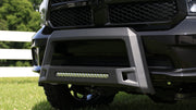 Whether the truck has aggressive lines or more refined curves, the LUND Revolution Bull Bar delivers extra front-end protection with its leading edge, chiseled three-dimensional design. LUND Revolution is constructed from heavy-gauge stamped steel with a light textured matte-black, powder coated finish. The rugged style features an integrated off-road LED light bar with a wiring kit, and installs with no drilling.