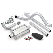Huge 2.5-inch stainless mandrel-bent with Straight-thru Monster muffler. Flows up to 119 Percent better than stock. Includes Chrome or Cerakote Black tip. Huge 2.5 inch stainless mandrel-bent tailpipe with a polished tip. Straight-thru Monster muffler flows up to 119 percent better than stock. Slashes backpressure; rich, authoritative sound. Constructed of heavy-gauge stainless steel, Banks Monster features a supersized, 2.5 inch tailpipe with a stainless tailpipe tip polished to a mirror finish - or choose the new Black tip! Monster Muffler, Banks straight-through performance muffler, is the industry's least restrictive, more than doubling the stock flow. Monster virtually eliminates backpressure from the catalytic converter back, for more power and efficiency - and an authoritative, yet civil, exhaust note. Available for 2-door and 4-door models. Includes: Stainless Monster muffler; Stainless 2.5 inch tailpipe; Polished Chrome or Black stainless tailpipe tip; Mounting hardware.Key Features: Mandrel bent Stainless Steel construction. Virtually eliminates backpressure. Lowers exhaust gas temps. Dramatically improves flow. Maximum Airflow. Huge 2.5 inch stainless mandrel-bent. Straight-thru Monster muffler. Flows up to 119% better than stock. Includes CHROME or CERAKOTE Black tip