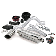 Banks Stinger Plus Systems includes Lifetime Banks Ram air filter and service kit; OttoMind Diesel Tuner; Quick Turbo turbine housing with BigHead wastegate actuator; polished stainless straight through Monster muffler with exclusive expansion chamber; 5 in. polished stainless double wall tailpipe tip; 4 in. constant diameter Monster exhaust and tailpipe; Electronic DynaFact pyrometer and boost gauge assembly; lift pump test gauge; Lifetime Ltd. Warranty.