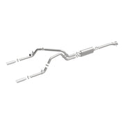The MagnaFlow Street Series Cat-Back Performance Exhaust System 19019 brings out the personality of your Truck with our signature resonant, powerful engine tone and dyno-proven performance. Thanks to its fast-flowing, mandrel bent 3in. main piping and 1 Straight-Through mufflers ending in a Dual Split Rear exit with 3.5in. Polished Clamp-On Double Wall Angle Cut Rolled Edge tips, this Truck exhaust kit has the performance chops to match its sporty sound and appearance. Upgrade your ride to the next level with an exhaust that has the pipes to put other Truck's to shame. With this system your vehicle will be producing Aggressive exterior and Moderate interior sound levels while leaving other cars and trucks feeling envious at every stoplight. Exhaust kit 19019 features a cat-back layout that replaces your ride's stock exhaust components from near the catalytic converter on back. Extensive 3D scanning during development has resulted in a direct-fit design that you can easily install yourself. 19019 is produced using CNC precision robotic manufacturing techniques and is backed by MagnaFlow's 1-year limited finish warranty and limited lifetime construction warranty.