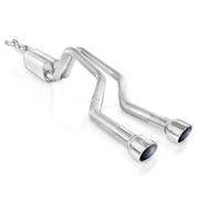 2006-09 Chevy 6.0L Trailblazer SS 2-1/2" performance connect catback exhaust with turbo chambered mufflers and X-pipe. Stainless steel construction, TIG welded, includes clamps, and hardware with polished tips. Exits two in center of back bumper. Fits to Stainless Works true-dual headers part # TBSS or TBSSOR. Will require cutting of stock rear valence section.
