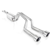 2006-09 Chevy 6.0L Trailblazer SS 2-1/2" performance connect catback exhaust with turbo S-tube mufflers and X-pipe. Stainless steel construction, TIG welded, includes clamps, and hardware with polished tips. Exits on each side below back bumper. Fits to Stainless Works true-dual headers part # TBSS or TBSSOR. Will require cutting of stock rear valence section.