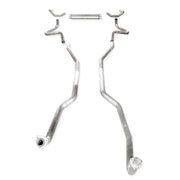 1967-68 Chevy Camaro, Small Block exhaust. Made from 304 stainless steel, for maximum corrosion resistance. All tubes are CNC mandrel bent for optimal flow. Designed to fit factory manifolds. With lead pipes sleeved and flared with flanges and over-axle pipes flow right into a Transverse muffler into the tailpipes that exit in stock location behind rear tire. 1967-68 small block Camaro. Mill finish, All TIG welded for strength and durability. These kits come with a lifetime warranty and proudly made in the USA.