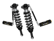 ICON Vehicle Dynamics V.S. 2.5 Series remote reservoir front coilover shocks are an incredible upgrade for the front end of the 2022-2025 Toyota Tundra or 2023-2025 Toyota Sequoia. These adjustable coilovers allow up to 1.25-3.5β of lift height adjustability on Tundra or 3-4.5" of lift on Sequoia, allowing the use of larger, more aggressive wheel and tire combinations. ICONβs Vehicle-specific shock length and valving along with the larger 2.5β shock body and increased piston area over stock components yield the maximum travel possible along with superior ride quality and suspension performance both on- and off-road. Reservoirs greatly increase shock oil volume and heat dissipation surface area to resist overheating and cavitation under hard use, which can lead to damper fade. When paired with ICON 2.0 or 2.5 Aluminum Series rear coilovers vehicle control will be balanced front to rear, resulting in the best overall driving experience for your Toyota Tundra or Sequoia.