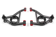 A-arms are one of the most important, yet overlooked suspension components. They are the direct link between the front wheels and the chassis. Any deflection causes a change in alignment, which results in poor performance and driving feel. Fabricated from heavy-duty 1.500-inch, 0.095-inch wall DOM tubing with laser-cut, CNC-formed plate steel braces for extra strength, deflection is eliminated with A-arms from BMR Suspension. BMRs AA011 Lower A-arms are fitted with heavy-duty ball joints and greasable, 95-durometer bushings add a solid, more responsive feel over the stock rubber bushings. BMRs bushings are internally fluted, which allows grease to evenly coat the inner sleeve. These flutes also direct grease to the outer edge of the bushing, keeping the thrust surface lubricated. This efficient lubrication ensures quiet, reliable operation over the life of the bushings. BMRs AA011 Lower A-arms eliminate A-arm deflection, greatly improving steering feel and response in normal and performance driving situations. The polyurethane bushings add strength and reduce deflection over the stock rubber bushing, while still absorbing much of the NVH. The tubular design gives you tons of added strength and a significant reduction in weight over the stock arms. The means you get a great blend of performance and comfort. Designed for street performance, drag race, and handling, and pro-touring applications. BMR Suspension AA011 Non-Adjustable Lower A-arms are available in black hammertone and red powdercoat for long-lasting good looks. Installation time is 3-4 hours. Proudly made in the U.S.A. Control arm hardware kit RH010 (Includes upper and lower control arm hardware - Highly Recommended) also available.