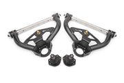 A-arms are one of the most important, yet overlooked suspension components. They are the direct link between the front wheels and the chassis. Any deflection causes a change in alignment, which results in poor performance and driving feel. Fabricated from heavy-duty 1.25-inch, 0.095-inch wall DOM tubing with laser-cut, CNC-formed plate steel braces for extra strength, deflection is eliminated with A-arms from BMR Suspension. BMRs AAU462 Upper A-arms are equipped with CNC machined, nickel-plated, dual-offset cross-shafts with heavy-duty stainless bushing retainers. They come pre-assembled with new polyurethane bump stops, and new upper ball joints are included. Greaseable, Delrin bushings add a solid, more responsive feel over the stock rubber bushings. BMRs bushings are internally fluted, which allows grease to evenly coat the inner sleeve. These flutes also direct grease to the outer edge of the bushing, keeping the thrust surface lubricated. This efficient lubrication ensures quiet, reliable operation over the life of the bushings.