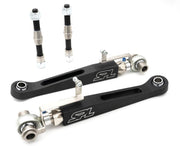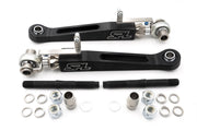 S550-Series Ford Shelby GT500 Mustang Front Lower Control Arms (FLCA) provide roll center, camber, and track width adjustment and allow for full articulation with the proper ball joint angle. The main arm is slotted to allow the use of pinch bolts, and our rotating clamps on SPL Parts' exclusive Double Adjuster lock down camber and track width settings. No more jam nuts!! Long gone are the days of fumbling with multiple wrenches to tighten jam nuts in place while trying to keep your bearings oriented correctly. Our Double Adjuster is machined from 4130 Chromoly, gun drilled to reduce weight, then electroless nickel plated for corrosion resistance. Blue Anodized Titanium hardware shaves even more unsprung weight from the arms without compromising strength. Stainless Steel spacers are provided to correct roll center for lowered vehicles. The use of FK Rod Ends and High Misalignment Spherical Bearings eliminates the flex and binding found in the OEM control arms, while allowing smooth articulation. Sold as a pair.Made in the USA!