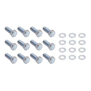 Spectre's Intake Bolt and Washer Set is engineered to provide premium quality hardware for Chevrolet 265-400 and Chrysler 273-440 small block engines. Measuring 3/8 inch-16 by 1 inch, these grade 5 bolts feature a corrosion resistant zinc-plated finish and hex heads to ensure easy installation. This kit includes 12 bolts and washers.