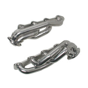 These BBK Performance shorty tuned Length exhaust Headers are designed and constructed as direct fit replacements for all 99-04 Ford 5.4L F150 truck applications. Each header is manufactured with 1-5/8 in. CNC mandrel bent tubing that offers unrestricted exhaust flow for increased horsepower and torque over factory OEM manifolds. BBK tuned Length headers offer improved scavenging waves for better combustion, which leads to improved performance and fuel economy over stock or equal Length headers. As with all BBK Performance exhaust headers they feature a 3/8 in. laser cut flange for additional strength and a guaranteed leak free fit. All headers are robotically and precision hand welded and then pressure tested to ensure years of reliability and performance in the real world. All BBK exhaust headers are available in a bright chrome or polished silver ceramic coated finish and include new exhaust header gaskets, header bolts and hardware to complete the installation. 50 State Legal - CARB APPROVED