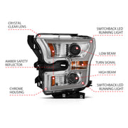 ANZO 2015-2017 Ford F-150 Projector Headlights w/ Plank Style Switchback Chrome w/ Amber