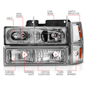 ANZO 88-98 Chevrolet C1500 Crystal Headlights Chrome Housing w/ Signal and Side Marker Lights