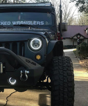 The Ultimate LED replacement Halo Headlight for the Jeep Wrangler JK NOW with an Integrated Amber Switchback Turn Signal! Increase night time visibility with high-quality LED illumination focused through advanced precision optics. Upgraded internal LED driver components allow the LED Low Beam to work with your JK Wrangler without the use of "flicker" adapters or other additional devices. Latest Improvements include: Improvements in brightness and reliability by adding a constant current LED driver to the main circuit board. Increased Reliability of the overall lifespan of the LEDS. Wider Input Voltage Range: The new SMD Halos can operate on a very wide voltage range from 12V-24V so that voltage spike can not damage the LEDs. Brighter/ More Even Light- by moving the heat load of the resistors off the PCB we are able to increase the number of LEDs on the circuit board without thermal issues. LED chips upgraded from a Cree LED to a Phillips Luxeon ZES chip.