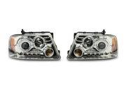 Raxiom 04-08 Ford F-150 Dual LED Halo Projector Headlights- Chrome Housing (Clear Lens)