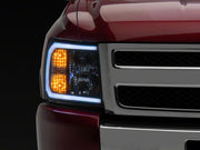 Raxiom 07-13 Chevrolet Silverado 1500 Axial Headlights w/ SEQL LED Bar- Blk Housing (Clear Lens)