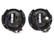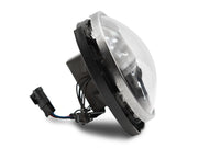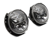 Raxiom's 7-inch Round Black LED Headlights are the ideal lighting upgrade that will allow you to light up the darkest trails and longest highways. Designed to be a direct replacement for your factory headlamps, these DOT compliant, high powered Lights will ensure that the path ahead is safely lit with a super bright 6500K color temperature light. These Raxiom Headlights also feature Daytime Running Light (DRL) accents that add a cool custom appearance to your Wrangler, while improving your visibility to other drivers. These Raxiom Headlights feature premium, high output Osram LEDs for use in both the High and Low Beams, and employee Nichia LEDs for use in the daytime running light accent bars. With up to a 60% lower power consumption than standard headlights, these LED Lights have a life span of about 50,000 hours. Designed to perform in the harshest of elements, these Raxiom Headlights feature a rugged aluminum housing with a tough as nails hard coated clear polycarbonate lens. Each Headlight is weather sealed to prevent moisture from harming the state of the art electronics found inside. These Raxiom LED Headlights can take just about anything the trail and mother nature can throw at them.