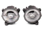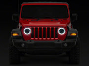 An excellent way to add modern styling to your Wrangler/Gladiator is with a pair of Axial 9-Inch LED Angel Eye Headlights. These Projector style Headlights feature LED "Angel Eye" halos and accent lights to give your an updated appearance. Utilizing a projector lens design, these Axial Headlights will light up the road ahead with a bright focused beam for better nighttime visibility. While the integrated LED halo accents will ensure that you are visible day or night by distracted drivers. Raxiom manufactures its headlights to precise standards from OEM quality materials. These Projector Headlights feature durable, black plastic housings with crystal clear polycarbonate lenses and modern LED accent lighting. Each housing weather is sealed to prevent dirt and moisture from harming the state of the art electronics. Raxiom designed their LED Headlights to be a direct plug and play replacement for your Wrangler/Gladiator's original factory headlights. With the included wiring harness adapters, installation can be completed in under 1 hour. It should be noted that the DRL / Turn Signal accent of the Light will require splicing into your Jeeps side marker/running lights for operation.