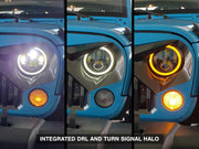 Raxiom 97-18 Jeep Wrangler TJ/JK Axial Halo Headlights w/ DRL Amber Signals- Blk Hsng (Clear Lens)