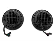 Upgrade the appearance and visibility of your Jeep Wrangler with a set of Axial LED Halo Headlights. These Axial Headlights feature a great looking integrated dual function accent halo. The halo functions as both a Day Time Running Light (DRL) and as a Turn Signal Indicator. The halo glows white as a DRL and amber when active as a turn signal. These Axial LED Headlights will certainly be much brighter than your stock headlights and feature a 6000K cool white color temperature. Featuring premium high output LEDs, these Axial Headlights out put 5400 lumens for the High Beams and 3600 lumens for the Low Beams. With a 60% lower power consumption than standard headlights, these LED Lights have a life span of up to 50,000 hours. Designed to perform in the harshest of elements, these Axial Headlights feature a rugged housing with a tough as nails clear polycarbonate lens. Each Headlight is epoxy sealed to prevent moisture from harming the state of the art electronics found inside. These Axial LED Headlights can take just about anything the trail can throw at them. With the included H4 - H13 wiring harness adapters (needed for 2007+ models) installation can be completed in under 30 minutes. It should be noted that the DRL/Turn Signal halo light will require additional wiring for operation. Installation instructions are included. These Axial 7-Inch Round LED Halo Headlights pass both DOT (U.S. Department of Transportation) certification and SAE (Society of Automotive Engineers) certification requirements making legal for street use. These aftermarket LED Headlights are intended for use with factory halogen headlight equipped models. In order to use these aftermarket LED Headlights on a Jeep that is already factory equipped with LED headlights, you will require a set of factory halogen headlight buckets – not included.