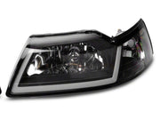 Improve the appearance and nighttime driving visibility of your 1999-2004 Ford Mustang just by replacing your old weathered, worn out, and yellowing factory headlights with a brand new pair of Axial Headlights that feature black housings and clear lenses. With an impressive LED Daytime Running Light (DRL) design, these Headlights will give your Mustang a whole new look. Manufactured from OEM grade materials, these Headlights are assembled to precise standards for long-lasting quality. These Headlights feature durable, black ABS plastic housings with multi-faceted chromed reflectors, clear polycarbonate lenses, and modern LED lighting. Each housing is weather-sealed to prevent dirt and moisture from harming the state of the art electronics found inside. These Headlights were designed to be a direct plug and play replacement for your vehicle's original factory housings. The DRL light bar portion of the headlight will require splicing into your running lights for operation. Please be sure to have your headlights properly aimed/aligned before driving at night.