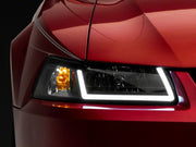 Raxiom 99-04 Ford Mustang Axial Series Headlights w/ LED Bar- Blk Housing (Clear Lens)