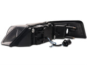 Give your 1999-2004 Mustang a new aggressive look with a set of Raxiom Black LED Halo Projector Headlights. These Black LED Halo Projectors have an intimidating design that blends smoothly into the lines of the New Edge Mustangs. The projector lenses light up the road ahead with a bright focused beam of light that not only looks great, but improves your night visibility. The LED Halo and accent lights give an exotic flair to your mustang that sets it apart from the rest of the herd. Equipped with H1 and H7 bulbs for high/low beams this pair of Mustang Headlights are DOT (Department of Transportation) approved for legal street use under compliance # QR1200197. These Projector Headlights include H7 bulbs for low beams and H1 bulbs for high beams.