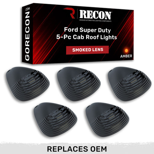 RECONRECON Part #264142BK - Ford Super Duty 99-16 5 Piece Cab Lights Amber Xenon Bulbs with Smoked Lens - (Attn: This cab light kit replaces OEM factory...