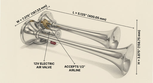 Description CAUTION: MAY TRIGGER A PSYCHOTIC EPISODE Crank up the audacity on the road with the PsychoBlasters Chrome Air Horn. If making an entra...
