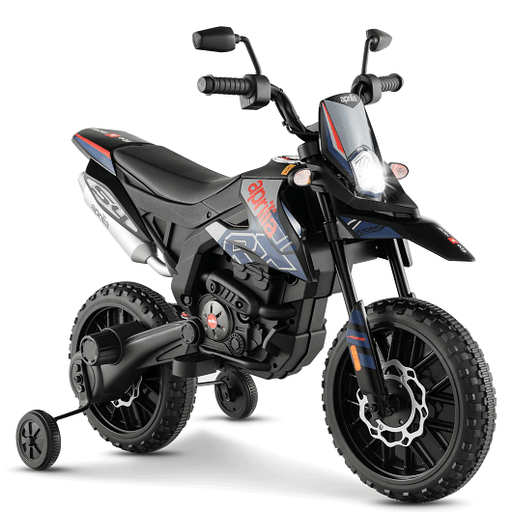 Aprilia 12V Kids Ride-On Motor Bike with Training Wheels - Officially Licensed Motorcycle Toy