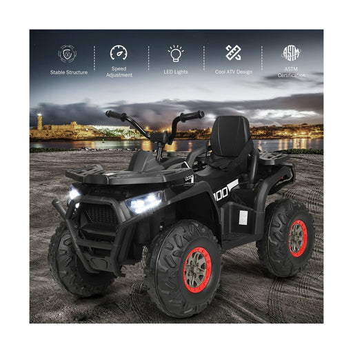 Costway 12V Kids ATV Quad Ride On Car with LED Light & Music - Black