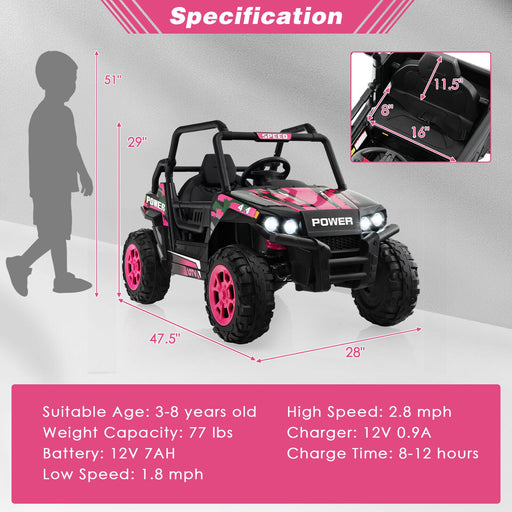 Electric Pink UTV Ride-On Truck for Kids with Remote Control, LED Lights, and Music