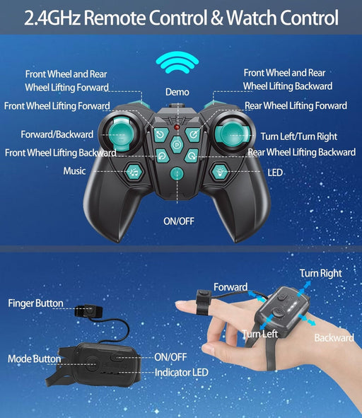 Remote Control Robot Dog Car for Kids with 8 Wheels and Handheld RC Stunt Features