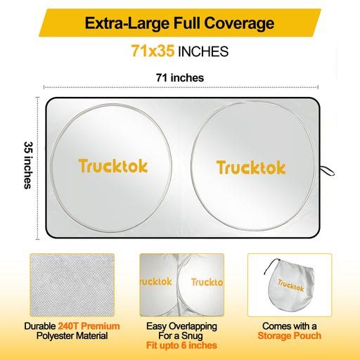 TruckTokMaterial: Durable 240T Premium Polyester Material Extra-Large Full Coverage – 71” x 35” Keeps Interior Cooler: protecting your dashboard and seats...