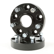 This pair of 1.25 in. wheel spacers from Rugged Ridge fit a 5 x 5- in. bolt pattern. These hub centric spacers move your wheels out to help fit wider tires and give your Jeep a wider track and improved stability. Constructed of double anodized black extra thick 6061T6 aluminum for long life and extra corrosion resistance. All hardware is grade-8 for extra strength.