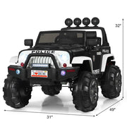 12 Volt Electric Kids Ride-On Police Truck Car with MP3 Player, Bluetooth Connectivity, and Remote Control - Black
