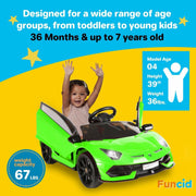 The 12V/24V Jeep Music Fashion Parent Remote Electric Ride-On Car for Kids Variant 1: Black/Red/Pink/Green Introducing the CAROMA Ride On Truck Car, a powerful and high-quality toy car that will bring endless joy to your little ones. With its sleek design and vibrant colors of black, red, pink, and green, this ride-on car is perfect for kids aged 3-8 years old. Let your child embark on exciting adventures with this 12V/24V Jeep Music Fashion Parent Remote Electric Ride-On Car for Kids. Key Features: Two modes design - Parent-child remote control mode and steering wheel and pedal power mode Adjustable seat belts for added safety Bright LED headlights for enhanced visibility Lockable double doors for easy access Impact-absorbing shock absorbers for a smooth ride Built-in AUX outlet for connecting media devices Bluetooth connectivity and USB port for seamless music playback Light-sensitive electronic auxiliary steering wheel for easy control 24V 9AH large battery for up to 2 hours of continuous playtime 2 x 200W dual driving force for powerful performance Product Specifications: Color: Black/Red/Pink/Green Material: PP Plastic, Metal Age Level: 3-4 Years, 4-7 Years Overall Dimension: 48.4in(L) x 34.6in(W) x 31.5in(H) Battery Type: 24V 9AH Weight Capacity: 220 lbs Recommended Age Range: 3-8 years old Character Family: Toy Car Variant 2: Black/White/Red/Pink/Green Experience the thrill of driving with the 12V7AH Electric Vehicles for Kids. This remote control ride on car is designed to provide a lifelike driving experience for toddlers aged 3-7 years old. With its realistic features and easy-to-use controls, your child will feel like a true driver. Choose from the stylish colors of black, white, red, pink, and green. Key Features: Lifelike Driving Experience with one-button start design, horn and engine sounds, and real foot pedal acceleration Two Driving Modes - Independent operation or remote control for added safety Built-in music player with USB/AUX ports and Bluetooth connectivity Rich control panel with LED display, speed adjustment, simulated car-style horn, and volume adjustment Upgraded configurations including a 30W*2 strong motor and spring suspension for a comfortable ride 12V 7Ah battery for extended playtime Two-point safety belt and lockable double doors for enhanced safety Product Specifications: Color: Black/White/Red/Pink/Green Recommended Age: 3-7 years Material: PP and ABS plastic, metal Battery Type: 12V 7AH Maximum User Weight: 67 lbs Maximum Speed: 3-5 km/h Charging Time: 8-12 hours Run Time: 2-2.5 hours Music Function: AUX & USB port / Bluetooth / built-in music Variant 3: Red/Yellow/Green Get ready for an adventure with the Licensed Lamborghini Aventador ride-on car. Designed with a cool and stylish appearance, this ride-on car is a perfect gift for children aged 3-7 years old. The control panel with multifunctional functions adds to the joy and real driving experience. Choose from the vibrant colors of red, yellow, and green. Key Features: Licensed Lamborghini Ride on Car for an authentic driving experience 2 x 35W Dual Drive Motor & 12V Battery for powerful performance Kids Self Driving & Parent Remote Control for added safety Real Horn, Engine Sounds & Hydraulic Doors for a realistic driving experience Soft Start & Soft Stop Function for smooth acceleration and deceleration Multiple entertaining functions including LED lights, loud horn, dynamic music, and story playback USB and AUX interfaces for additional music options Shock-absorbing wheels and slow start functions for maximum safety Product Specifications: Color: Red/Yellow/Green Recommended Age: 3-7 years Material: PP Plastic, Metal Battery Type: 12V Motor Type: 35W * 2 Maximum User Weight: 67 lbs Maximum Speed: 3-5 km/h Charging Time: 8-12 hours Run Time: 2-2.5 hours Music Function: AUX & USB port / Bluetooth / built-in music